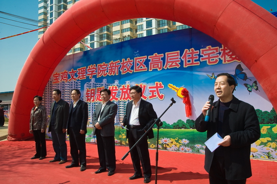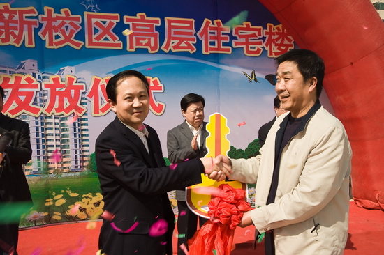 王志刚向学院后勤管理处发放了“金钥匙”。新校区高层住宅楼360户教职工高高兴兴地领取了房屋钥匙,开始装修,准备乔迁新居。