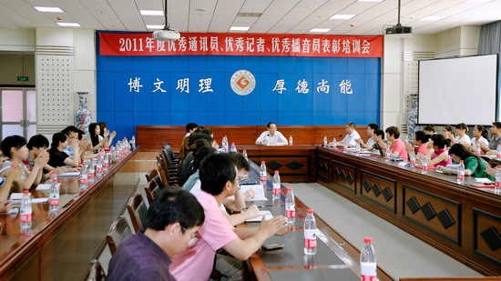 6月7日下午,学校在新校区甘棠厅召开2011年度优秀通讯员、优秀记者、优秀播音员表彰培训会。党委副书记李全武出席会议并讲话。党委宣传部副部长孙宏健主持会议。
